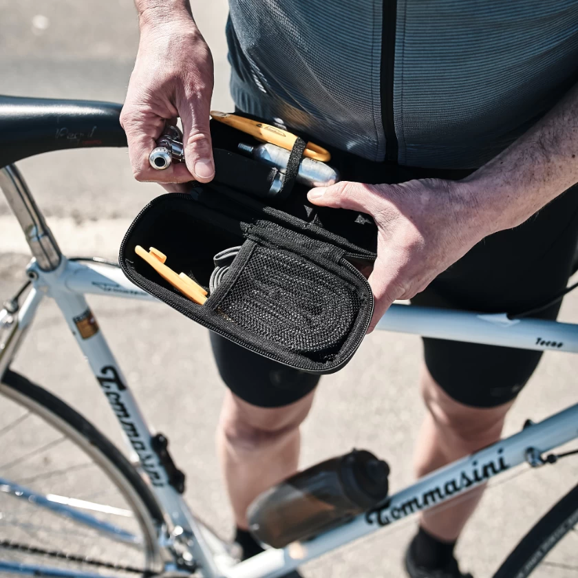 Die Fidlock TWIST Toolbox mit Bike Base bietet Platz für kleines Werkzeug oder Accessoires, welches man bei einer Fahrradtour an Bord haben möchte. Ob Luftpumpe, Schlauch, Mini Tool oder Flickzeug, mit den inneren Mesh Taschen hat alles seinen Platz, sodass kein Klappergeräusch während der Fahrt entsteht. Durch das eckige Design kann sogar das Smartphone in der wasserabweisenden Twist Box platziert werden, um es vor Regen oder Spritzwasser zu schützen.
