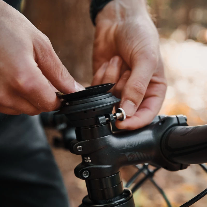 Die Fidlock Vacuum ahead cap base ist eine Vorbaukappen-Halterung, welche aus einer speziellen Ahead Kappe, die am Steuerrohr verschraubt wird besteht. Dank Vacuum cap base kann ein Smartphone mit einer Kombination aus Unterdruck und Magnetkraft sicher am Lenker-Vorbau fixiert werden. Die Base wird auf die Cap gesteckt und ganz easy mit einer Klemmschelle mit Hilfe einer Rändelschraube oder einer diebstahlsicheren Inbusschraube befestigt. Die ahead cap base kann somit schnell und einfach abmontiert werden.