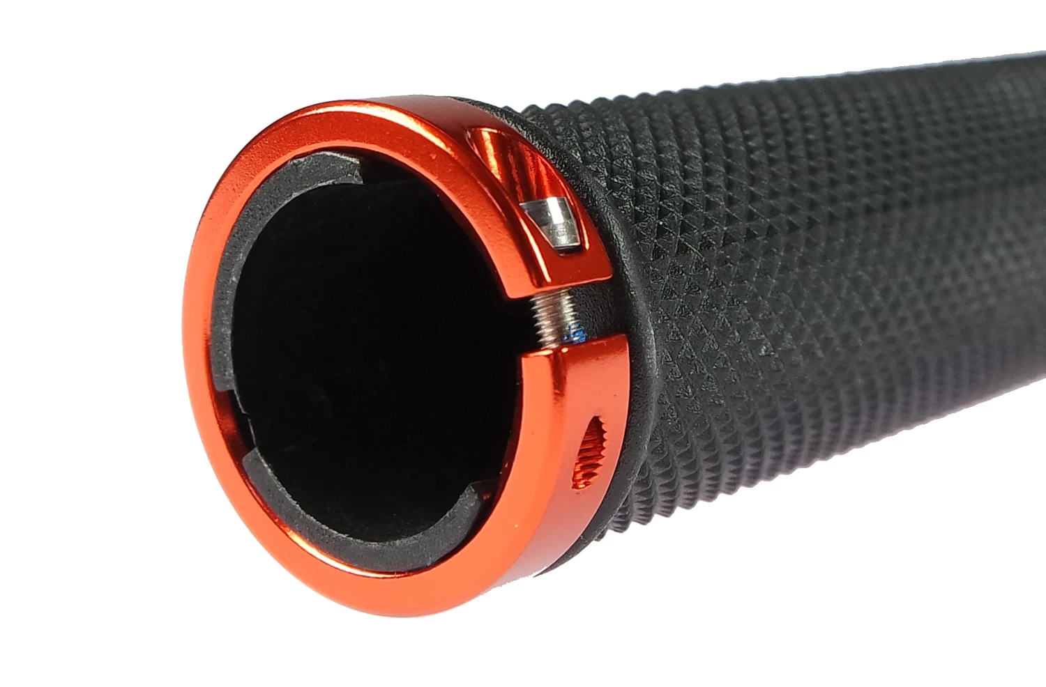 2 Klemmringe inkl. Schrauben ermöglichen das sichere Fixieren der Griffe am Lenker. Der Logoprint findet sich auf der inneren Aluminiumklammer der KTM-DIAMOND CLAMP Griff sowie auf den Endkappen.