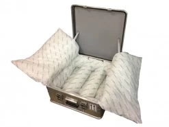 Die Leichtmetall Transportkiste besteht aus einer Aluminiumlegierung und ist übereinander stapelbar. Ein besonders stabiler Boden, Rand- und Deckelprofil sowie verstärkte Ecksicken aus Aluguss, machen diese Kiste zu einem hochwertigen Spezialbehälter. Da im möglichen Brandfall, Lithium-Ionen Batterien nicht einfach mit Wasser gelöscht werden können, besitz der Akku Safe im Inneren ein feuerfestes Polster mit Aufsaugmaterial aus textuierten Cirrux Glasfasern. Dies wurde auch bei einem Brandtest erfolgreich getestet. Ergebnis war, dass ein Übergreifen der Flammen auf benachbarte Akkus nicht möglich ist und die Temperatur an der Behälteroberfläche unter 100°C bleibt. Daher wurde die Akku Aufbewahrungsbox nach UN-Bestimmungen (3480) als Gefahrengutverpackung zugelassen und für den öffentlichen Transport freigegeben. Somit kannst Du deine Akkus auch auf langen Reisen ohne Bedenken in deinem Auto transportieren.